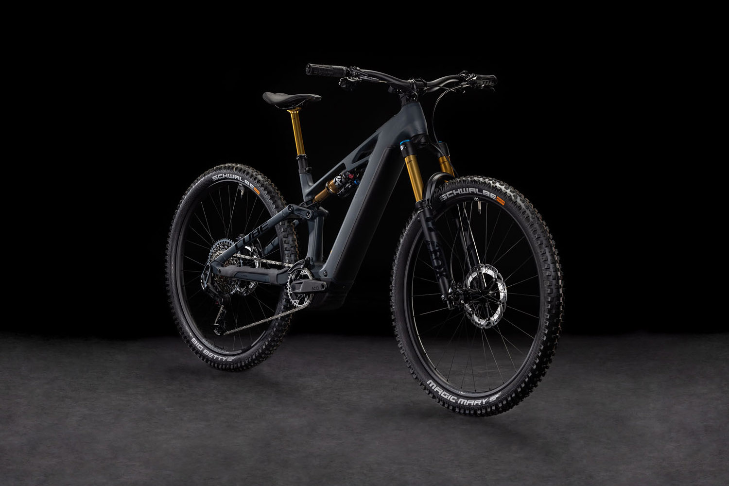 Das Cube Stereo Hybrid ONE44 HPC AT überzeugt mit jeder Menge ausgeklügelter Details. Zum Beispiel mit hydraulischen 4-Kolben XT Scheibenbremsen von Shimano, welche die supergriffigen Schwalbe Magic Mary beziehungsweise Big Betty 2.4 Zoll Reifen zuverlässig und sicher verzögern – für 1a-Geschwindigkeitskontrolle, egal bei welchen Bedingungen. Der Bosch CX Motor mit bis zu 85 Nm Drehmoment und starkem PowerTube Akku für hohe Reichweite liefert jede Menge Vortrieb, den der XO Eagle Transmission 12-fach Antrieb von Sram über die Newmen Beskar 30 Laufräder top dosiert auf den Trail bringt.